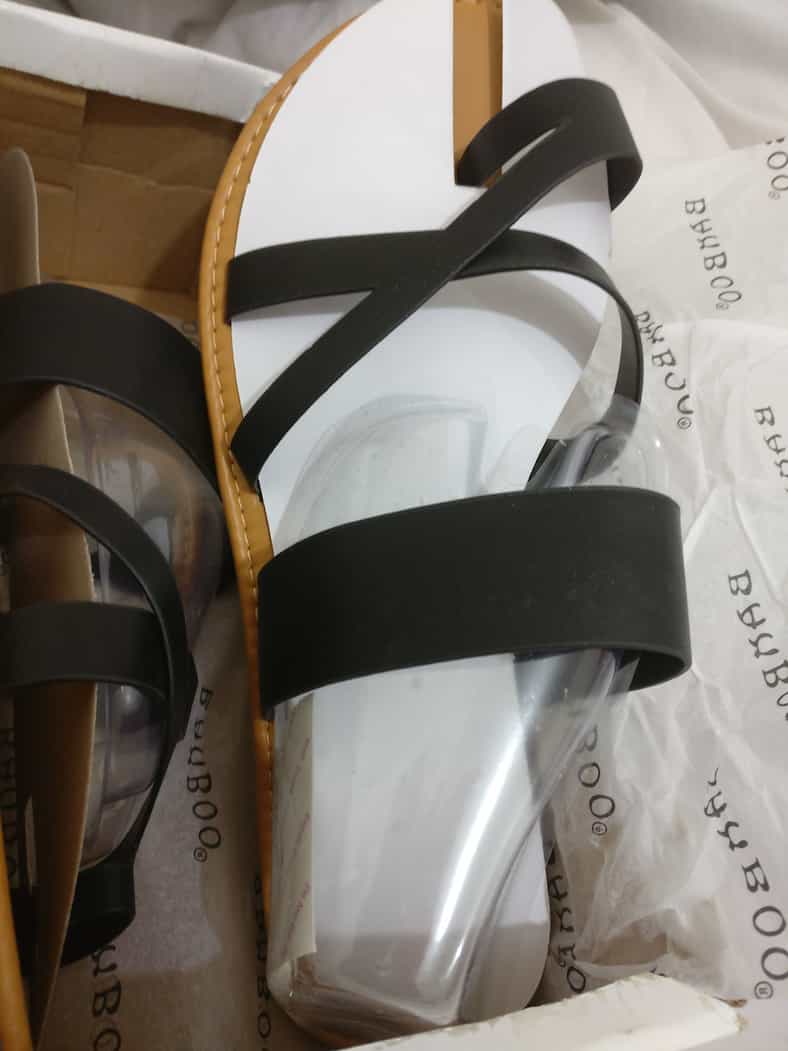 אני הזמנתי 2 פריטים שונים, סנדלים במידה 40 וחולצת בייסיק בצבע כחול כהה במידה 4X. הנעליים מתאימות בצורה מדויקת למידות בארץ. הן לא צרות ולא רחבות מדי בסולייתן, ולמרבה המזל לא הגיעו עם ריח לא נעים שאותו חומר דמוי-עור ממנו מייצרים את הסנדלים הללו יכול להגיע, גם כאשר רוכשים אותן בארץ. כך, בניגוד למוצרים אחרים שאני מזמינה מהאינטרנט, לא היה צורך להשאיר בשמש בחוץ לאוורור ונטרול הריחות. הסוליה גמישה ולא קשיחה, שזה מצוין, והעיצוב נראה זהה לחלוטין לעיצוב בתמונה. האריזה מגיעה עם גוף פלסטיק ששומר על צורת הסנדל.