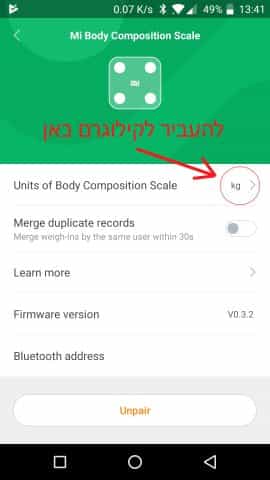 וטיפ קטן לסיום, המשקל מגיע ביחידות מידה סיניות שנקראות jin, צריך את האפליקציה כדי לגרום למשקל לעבוד בקילוגרמים, ראו במסך הבא: