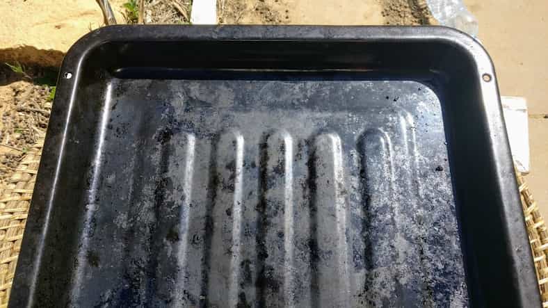 המבחן הראשון: כתמי שומן ושאריות שרופות מתבנית של תנור
