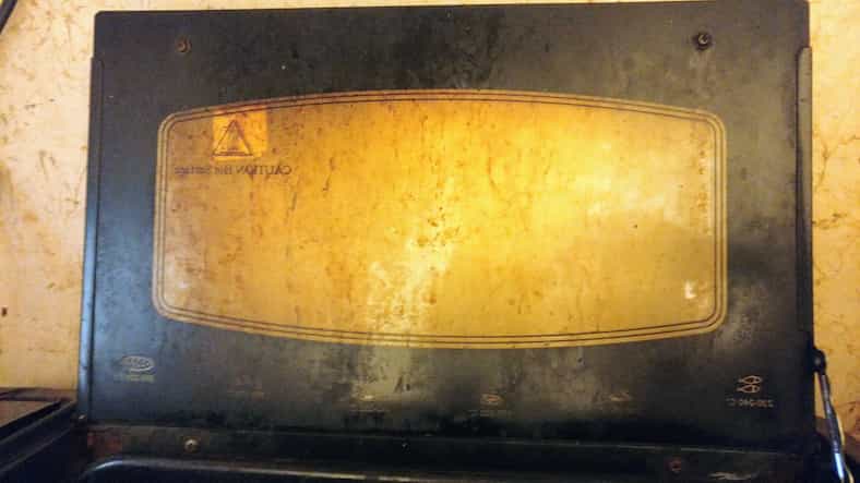 המבחן השלישי: כתמי שומן שרוף על זכוכית של טוסטר אובן