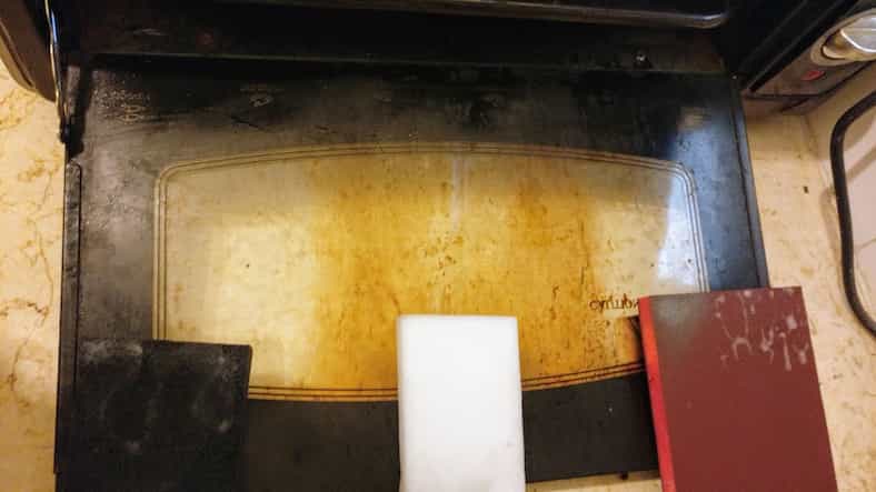 הכתם שספוג הפלא הרגיל הכי התקשה איתו בסקירה הקודמת הוא זכוכית הטוסטר אובן. לאחר עשרות שימושים הזכוכית ספגה הרבה כתמי שומן שהפכו אותה לחומה ודביקה, האם הספוג המשודרג יצליח לנקות אותה?