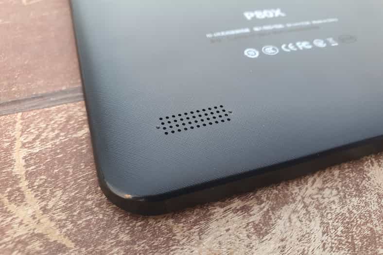 מלבד זאת אפשר למצוא את הרמקול האחורי הבודד של ה-P80X בחלק התחתון שלו המספק איכות אודיו סבירה למדי לשימוש כטאבלט לצריכת מדיה כמו יוטיוב, נטפליקס וכו. בחלק העליון ניתן למצוא את מכסה גומי המסתיר את כניסת הסים וכרטיס הזיכרון של הטאבלט יחד עם חיבור אוזניות 3.5 מ”מ סטנדרטי ושקע טעינה שמגיע באופן מפתיע בתור חיבור USB-C עדכני. לבסוף בצד הטאבלט אפשר למצוא את כפתורי הווליום וכפתור ההדלקה שלו.