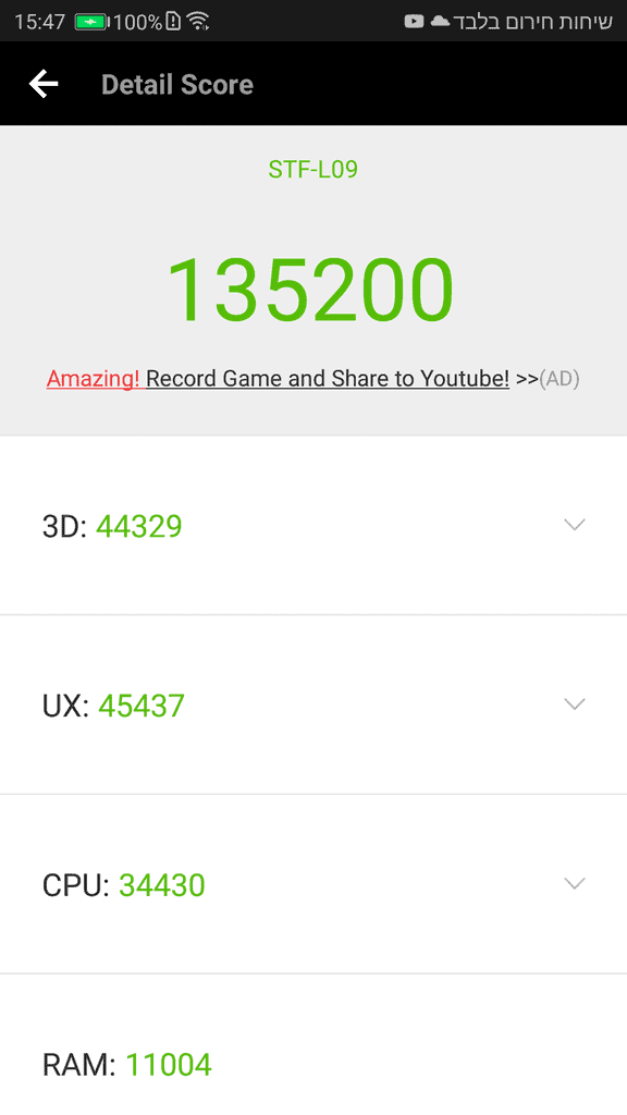 אין לי מה לפרט כאן יותר מדיי מכיון שאני לא מסוג האנשים שחורשים עם הסמארטפון על משחקים כבדים ובימינו המעבדים המתקדמים יריצו כמעט כל דבר בצורה חלקה וכך גם כאן הממשק טס גם כאשר מעמיסים עליו מספר רב של אפליקציות ,הורדתי את המשחק המוכר אספלט והמכשיר אכן הריץ אותו בצורה טובה, בנוסף הרצתי את המבחן של Antutu והתוצאה יפה: