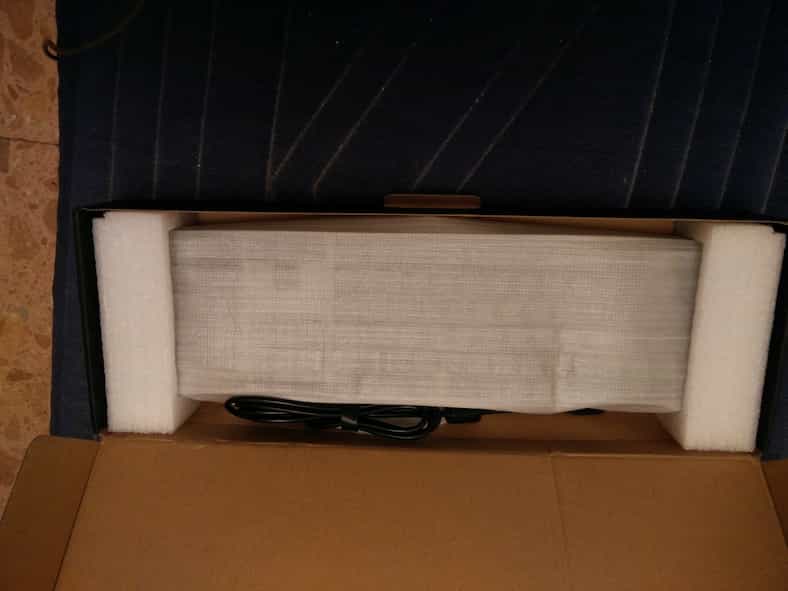 האריזה הגיעה חבוטה כהוגן, אך המקלדת עצמה במצב מצוין כי היא ארוזה היטב: קרטון גבוה למדי, בתוכו המקלדת עטופה משני קצותיה בספוג עבה, כך שמכות וחבטות לא מגיעות למקלדת.