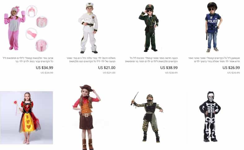 כרגע יש גם מבצע – משלוח כל סוגי התחפושות, עד 5 ק”ג – החל מ14.90$ בלבד בשימוש בקופון CLO50