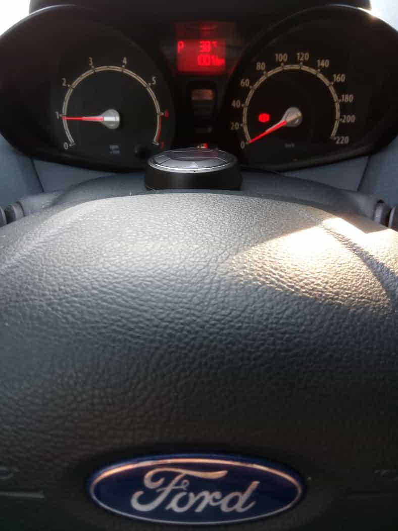 את החוט יש להעביר בצמוד לדשבורד, בחריצים שבין חיבורי הפלסטיק ואת הדיבורית כדאי למקם כמה שיותר קרוב לפה שלכם שניתן. אני בחרתי לשים את הדיבורית מאחורי ההגה:
