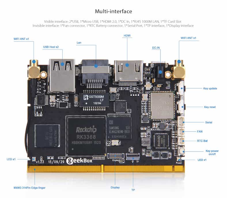 אלה למעשה מוצרים נלווים שמיועדים לגיקבוקס וניתן לרכוש כבר היום, הם מתחברים לחיבורים שכבר קיימים ב-GeekBox, לא צריך לפתוח שום בורג כדי להגיע אליהם ולא צריך אפילו כלי עבודה! רק לשלוף את שתי האנטנות מגב המכשיר, להרים את מכסה המנוע ולגלות את הלוח עם החיבורים כמפורט: