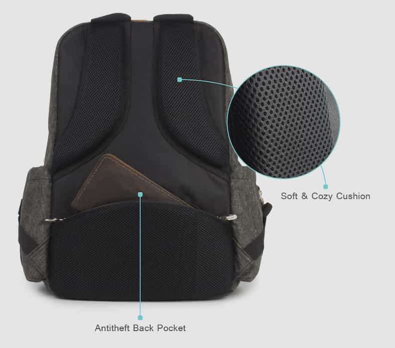 הגב מרופד היטב ונוח מאוד לגב. לא נצמד או מחמם מידי. בתחתית יש גם תא ‘נגד גנבים’ שבו אפשר להכניס ארנק ומפתחות. פשוט נוח!