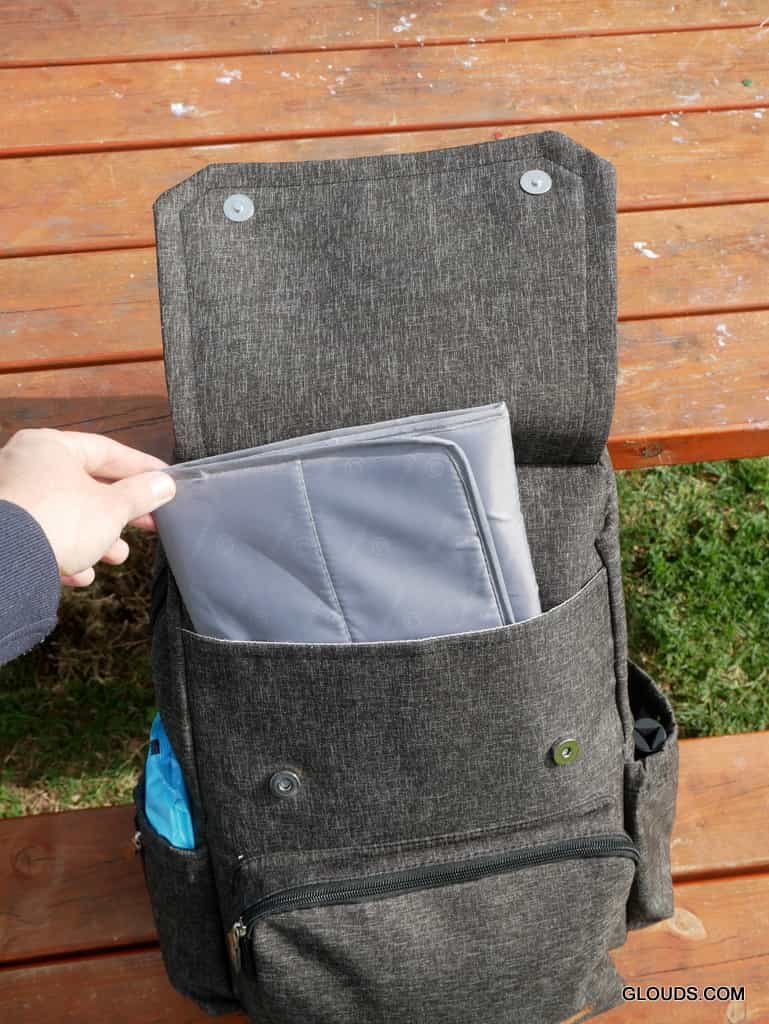 תיק גב שהוא גם תיק החתלה ייעודי, זול יחסית ואיכותי. עשוי בדים עמידים וטובים, עם חלוקת תאים טובה ונוחה. היה לי חשוב שיהיה תא קטן לחיתולים ומגבונים ושאר פריטים שנשלפים לעיתים קרובות, מבלי להידרש להוריד את התיק ולפרוס אותו לגורמים.