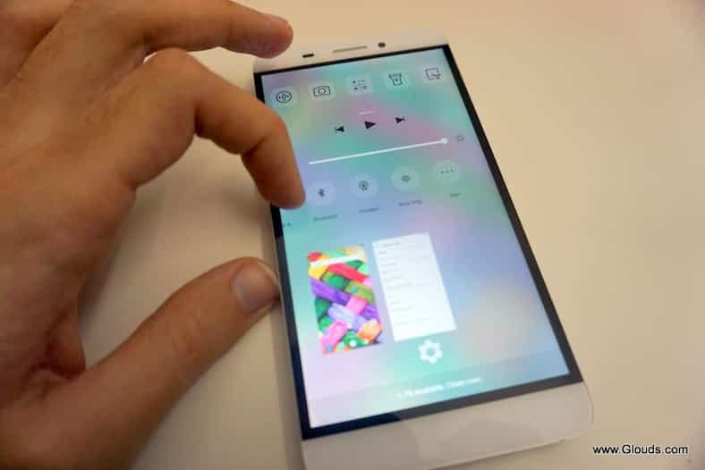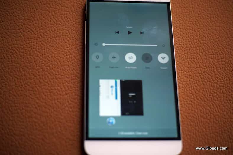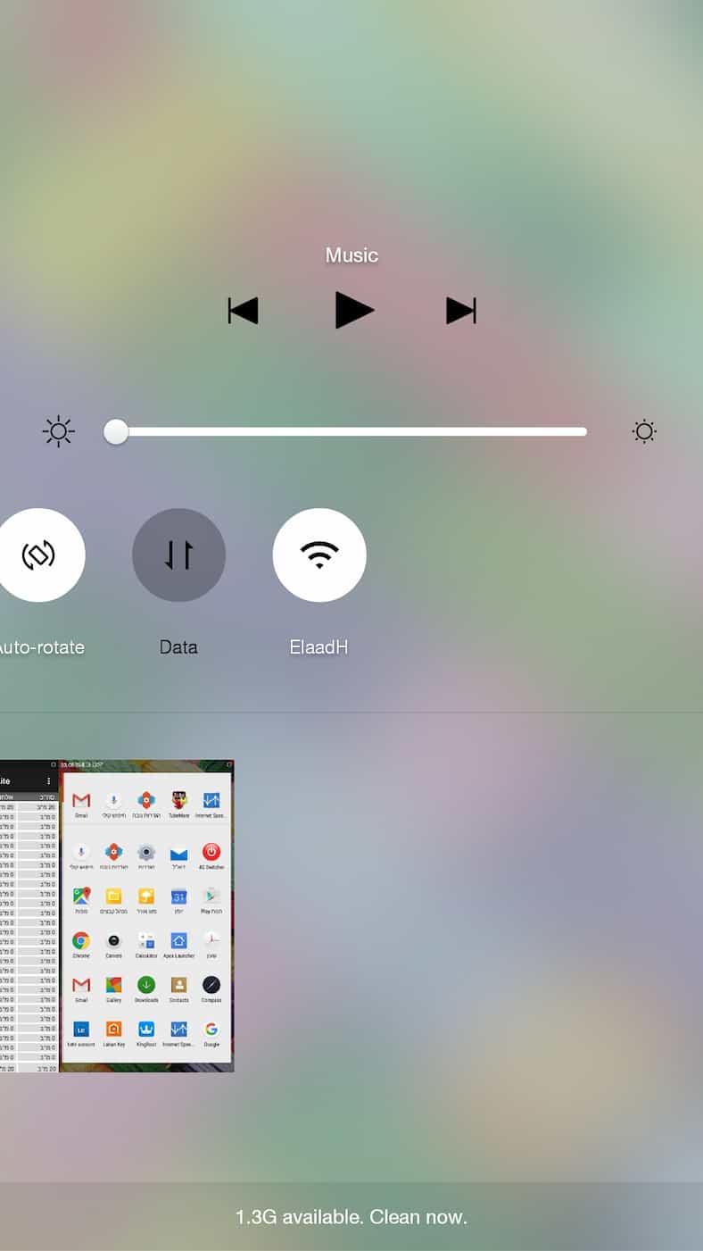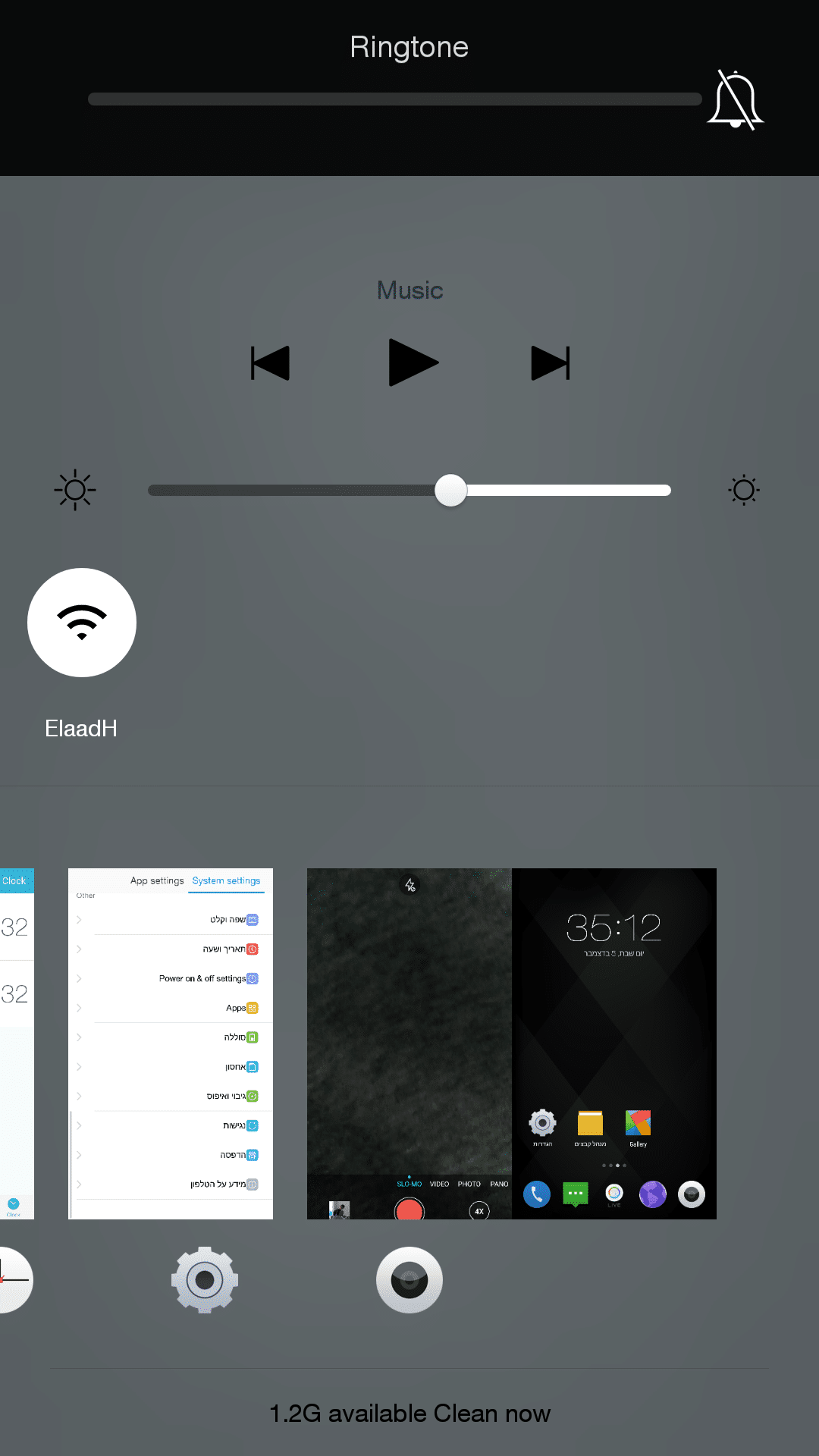 - מסך קיצורי הדרך, וניהול אפליקציות פתוחות אוחד כאן למסך אחד בחיקוי די בוטה של מערכת IOS של האייפון. העיצוב והנוחות לא מוצלחים יותר מהמבנה הרגיל של אנדרואיד, אבל ניחא, אפשר להתרגל לזה די מהר. מה שאי אפשר להתרגל אליו מהר, אם בכלל, הוא שגם קיצורי הדרך (WIFI, GPS וכו') וגם האפליקציות הפתוחות, מוסטים שמאלה, עד כדי שרובם אינם נראים במסך. בכדי להציגם צריך 'למשוך' אותם ימינה שוב ושוב בעקשנות, עד שהם מואילים להישאר במקומם. גם אחרי היישור הידני, מידי פעם הם ישובו שוב לשוליים, ושוב צריך להאבק ולמשוך אותם שוב ושוב לימין.