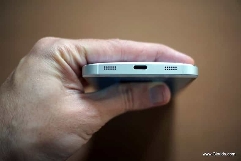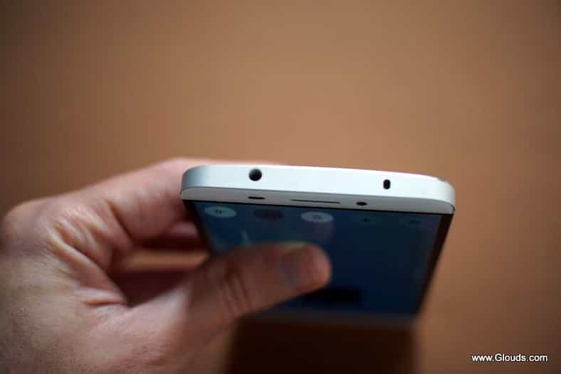 מעל המסך גריל אוזנייה דקיק, מצלמה קדמית וחיישני קרבה ותאורה. בנוסף יש כאן נורית התראות נסתרת וקטנה. בתחתית שלוש כפתורי האנדרואיד הרגילים, בתאורה חלשה מאוד, כמעט בלתי מורגשת, אלא אם אתם בחדר חשוך (וטוב שכך).