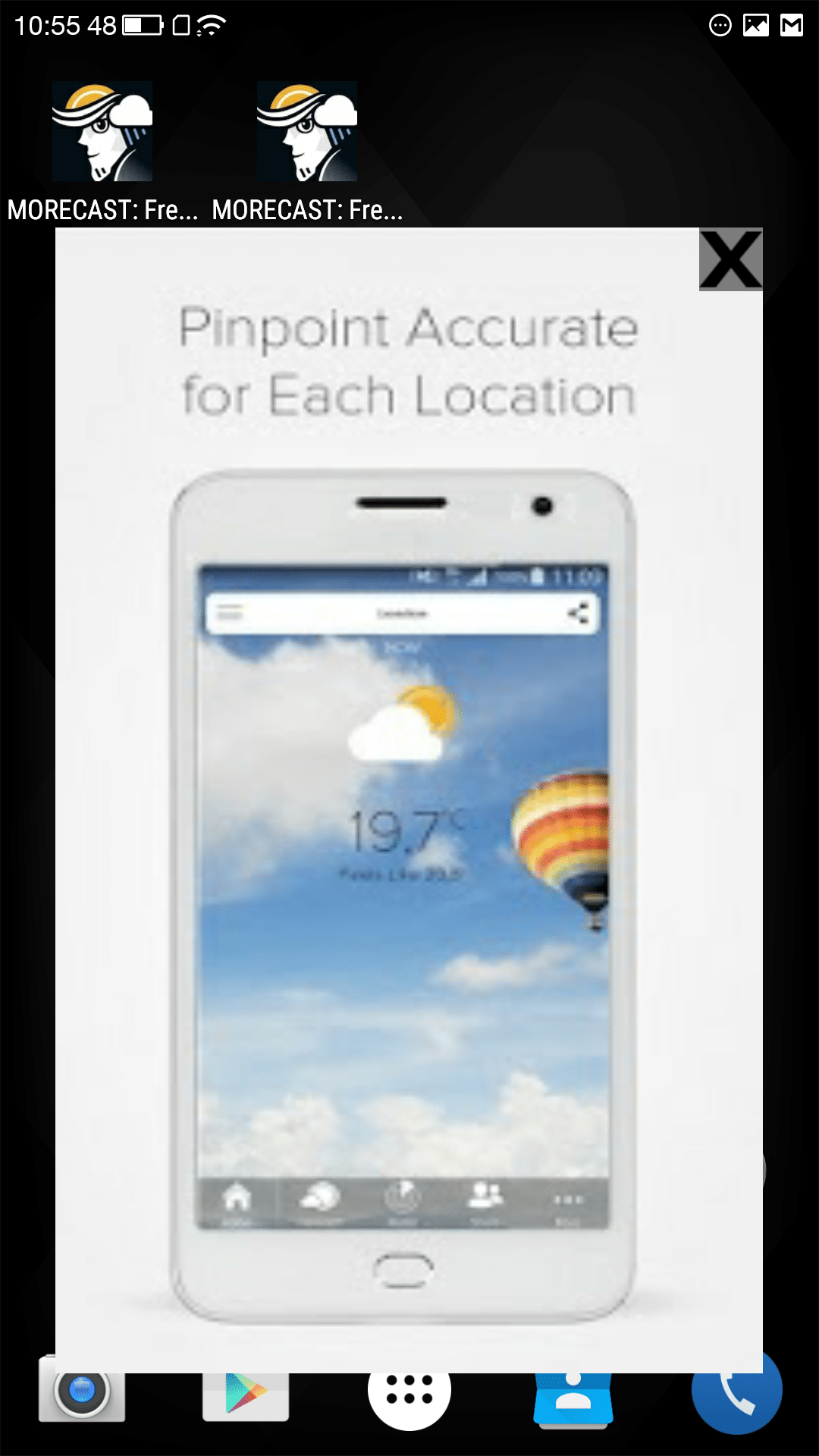 אם זה לא מספיק, לאחר כמה שעות גיליתי שהותקנו אוטומטית אפליקציות שונות, כמו אפליקציית מזג אוויר לא ברורה. מחקתי אותה מיד כמובן. לאחר חצי שעה חזרתי אל המכשיר והופ – על שולחן העבודה הותקנה האפליקצייה שוב – לא פעם אחת, אלא 4 פעמים!!!