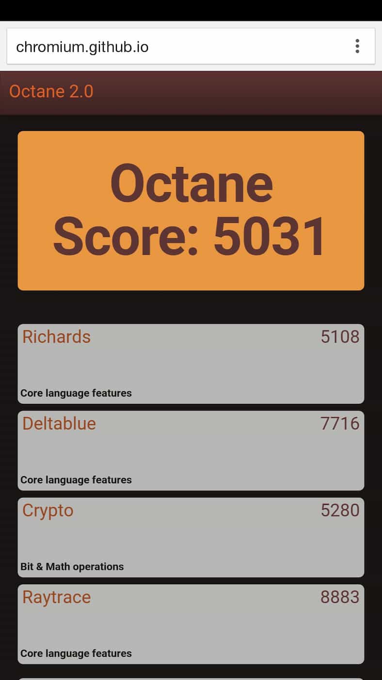 באנטוטו 64BIT הוא מקבל כ50 אלף נקודות, ובמבחן OCTANE 2.0 לביצועי הדפדפן הוא מקבל 5031 נק'.