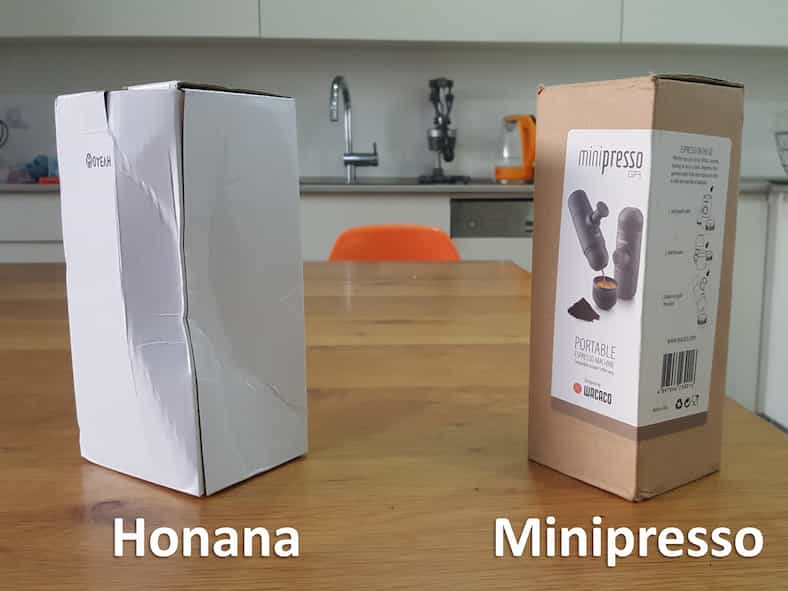 בסקירה זו נבחן את המכונה המקורית של Minipresso ( [ajaxzooz name=”WACACO+Minipresso” mode=”lowest”] ויש לה גם גירסה עם קפסולות) מול הגירסה הסינית המכונה MOYEAH שעולה באזור 30$ ונמכרת בבנגגוד תחת השם Honana שזה שם כללי לאוסף מוצרי הבית והמטבח של banggood.