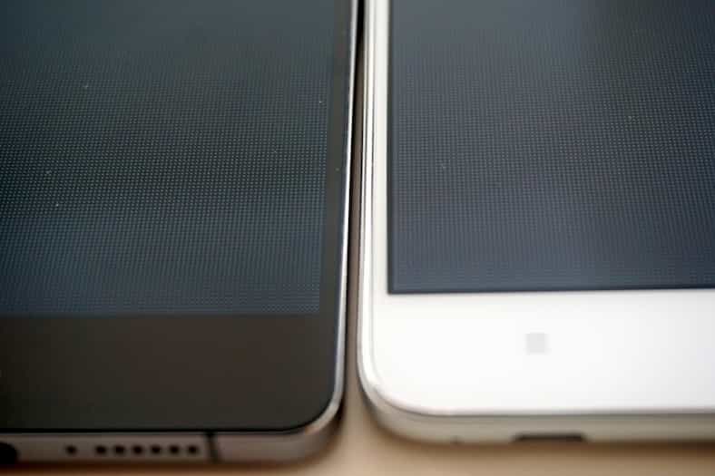 מלפנים הוא כולו זכוכית. שולי המסך דקים בטירוף והמסך עצמו גם כן כהה מאוד ומתמזג היטב עם המסגרת השחורה. גם החלק העליון והתחתון, הסנטר של המכשיר – קטן מאוד יחסית. איזה כיף לראות מכשיר סיני עם פורפורציות של מכשיר דגל.