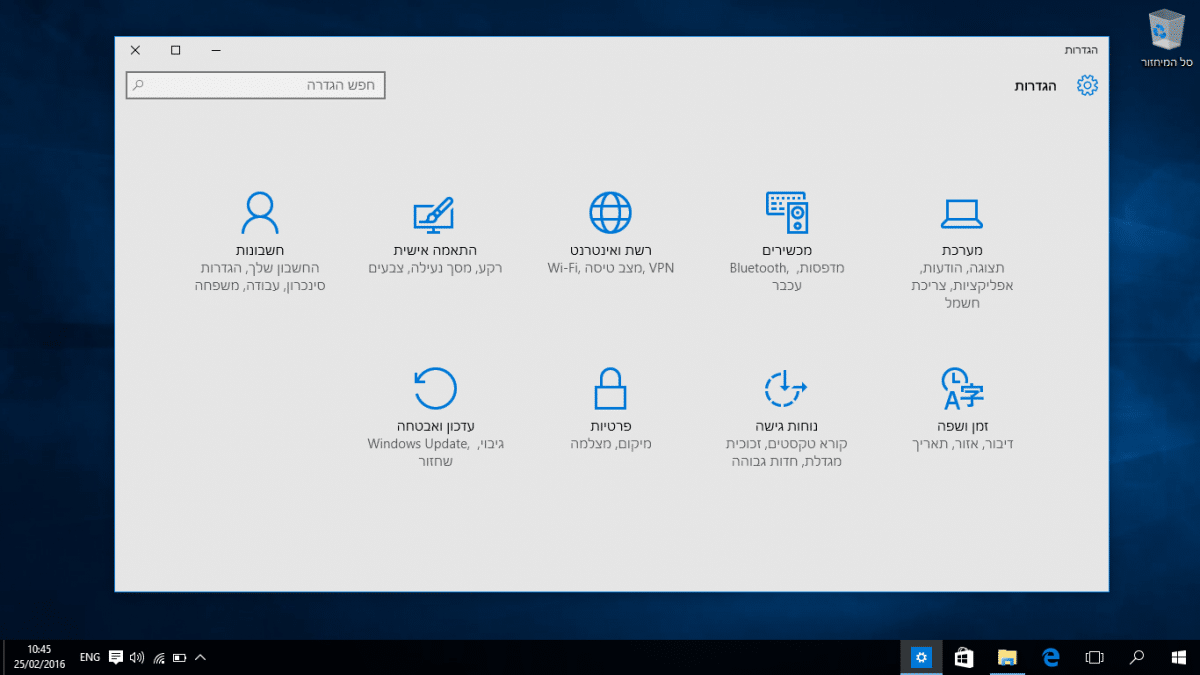 - Windows 10 מלא בעברית