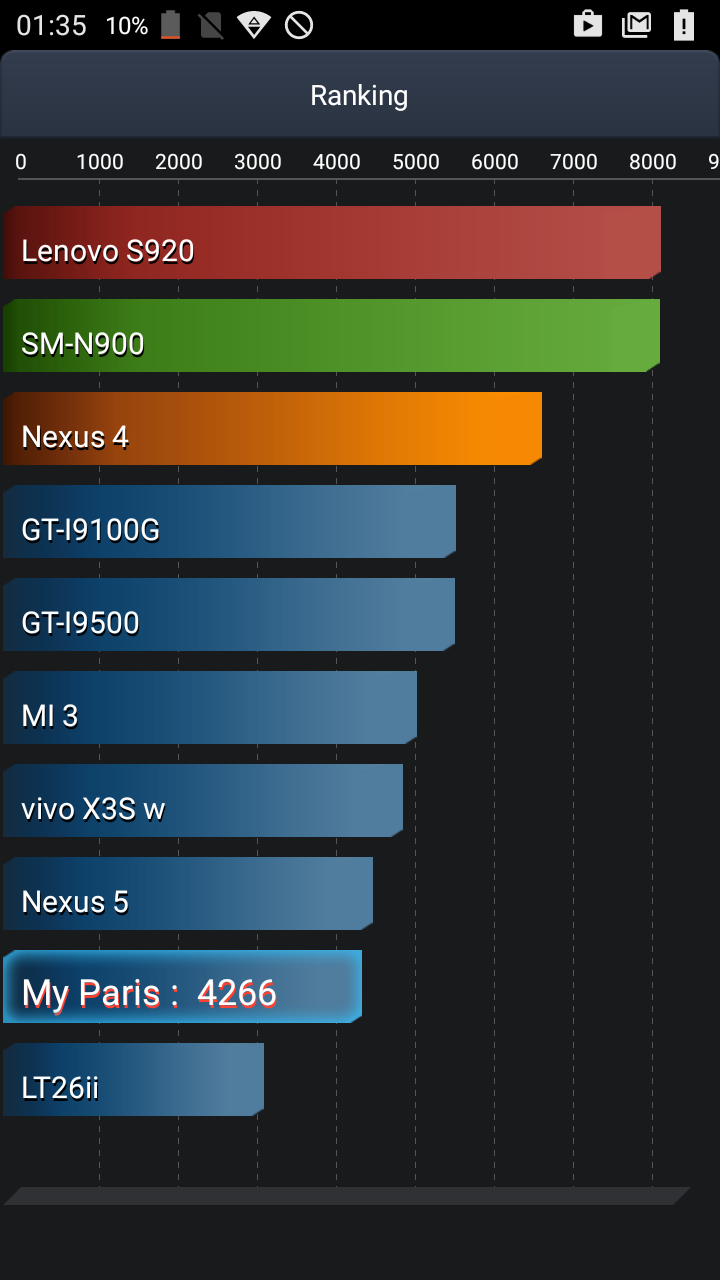 במבחן הסוללה של אנטוטו הוא קיבל 4266 נק', כמו הנקסוס 5.