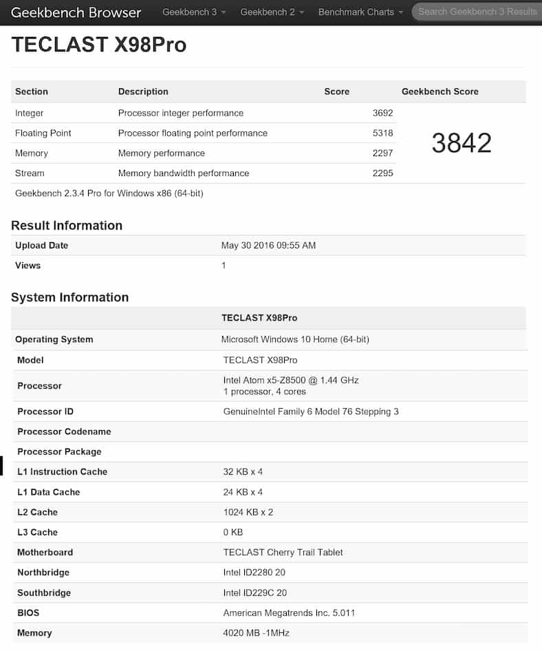 שלא תבינו לא נכון, ערכת השבבים של אינטל מסוג x5-8300 היא טובה למרות מקומה בסדרה, אך היא מוגבלת בזיכרון עבודה של עד 2GB. הסינים שרצו ליצור מכשירים מתקדמים יותר מבלי להגדיל עליות של מעבר לדגמי x5-8500 מצאו דרך להשתמש עימה בזיכרון 4GB. על פי טבלת השבבים ניתן לראות כי הפערים הגדולים בין שלושת סוגי הדגמים היו בין 8300 ל 8500, אך עם הצמדת זיכרון בן 4GB ל 8300 הפער הזה הצטמצם. עם זאת, עדיין נותר פער המהירויות שבין שני סוגי המעבדים והוא בן 22% כאשר הפער בין מעבד 8700 ל 8500 הוא 7% בלבד. ולמה אני מספר לכם זאת? כי המעבד של Microsoft surface 3 הוא x7-8700 שאמנם חזק משל מעבד ה x5-8500 של Teclast X98 Pro אבל בפערים לא משמעותיים כל כך, וניתן לראות בטבלת השבבים שגם בשאר הנתונים זה כך.