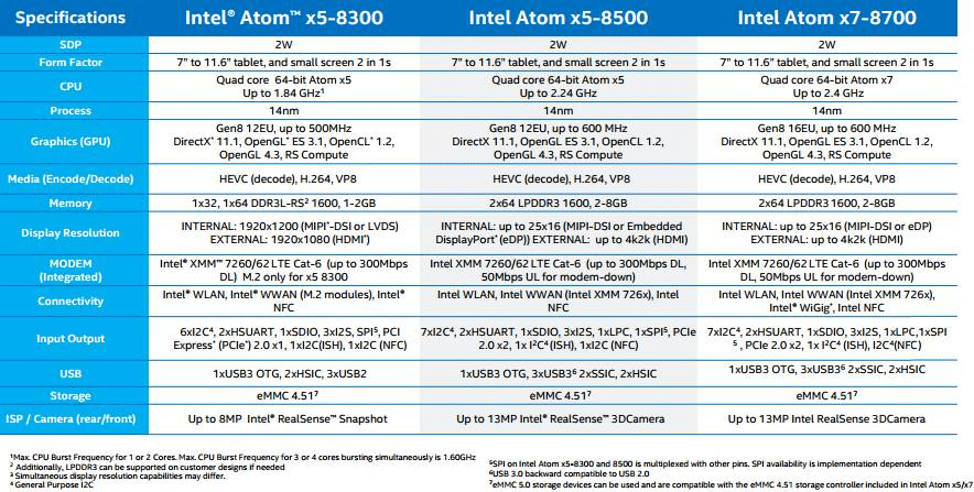 בסוף חודש פברואר 2015 חברת אינטל הציגה סדרת מעבדי אטום חדשה הבנוים בטכנולוגיית 14 ננומטר: x5-8300, x5-8500, x7-8700 כאשר כולם בעלי ערכת שבבים 64bit. מדובר בסדרת מעבדים ברמה גבוהה וצריכת אנרגיה נמוכה יחסית שאינם זקוקים לקירור מאולץ (מאוורר) בכדי לתפקד היטב. צעד זה היווה זרז המשכי לחגיגת פיתוח של מכשירי טאבלט ומיני מחשבים מבוססי מערכת חלונות ואנדרואיד ברמה גבוהה, ושעיקרה מיוצר בסין. מתוך סדרת שלושת סוגי השבבים, האחד שהיה ועודנו בשימוש הרב ביותר במכשירים הנמכרים היום בשוק הוא x5-8300. הסיבה לכך היא כלכלית ונובעת מהרצון ליצור מכשירים ברמה טובה אך בעלות נמוכה דיה בכדי שירכשו בקלות גם ע"י מי שידו על הכיס אינה קלה.