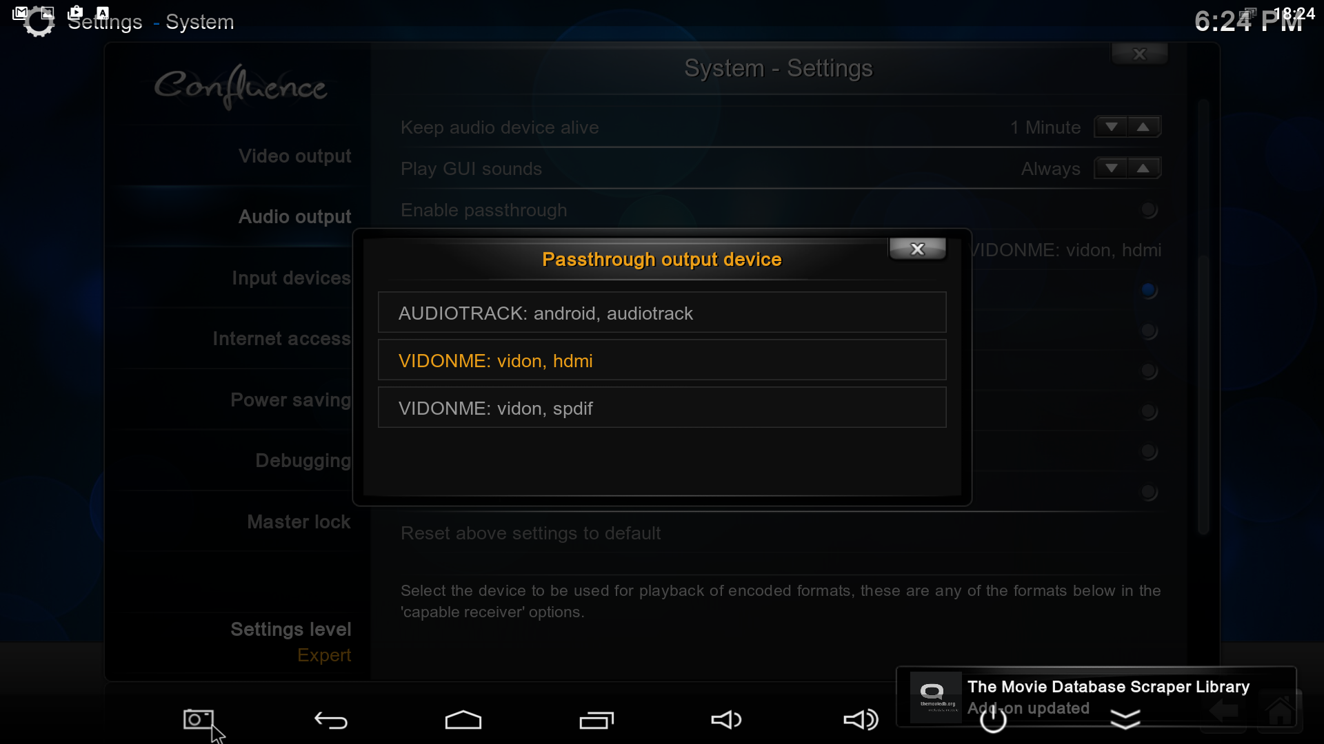 אין תמיכה בפורמטי אודיו HD בחינם – כרגע אין פיתרון לנושא עד ש- armlogic ישחררו עידכון– 24/04/2016- vidon פתחו את הנגן לשימוש מלא בכפוף לרישום חינמי אצלהם ובכך פתרו את הבעיה- תוספי 64 ביט לקודי דוגמת pulsar לא עובדים (נכון לכל אנדרואיד 64 ביט)