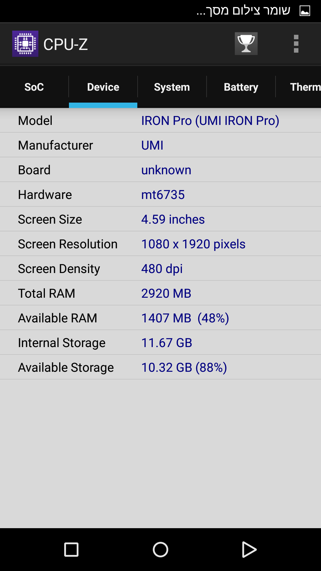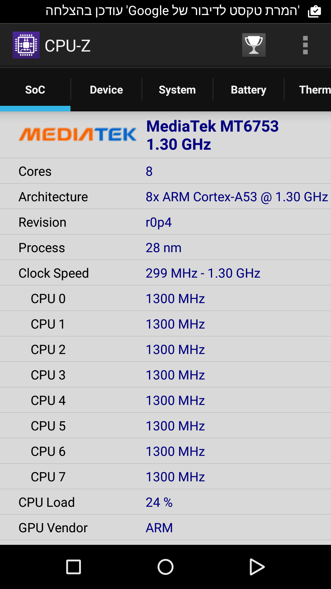 - מעבד – Mediatek MTK6753, Octa-core 1.3GHz 64-bit
