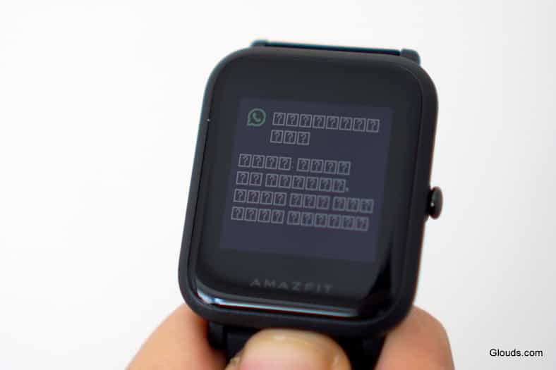 הבעיה? אין תמיכה בגופני עברית ולא נראה שזה ישתנה. התצוגה הפועל היא של קוביות ואיקסים. כלומר בהיבט ההתראות, אין לנו כאן בשורה על פני הMI BAND 2 הפשוט והזול יותר.