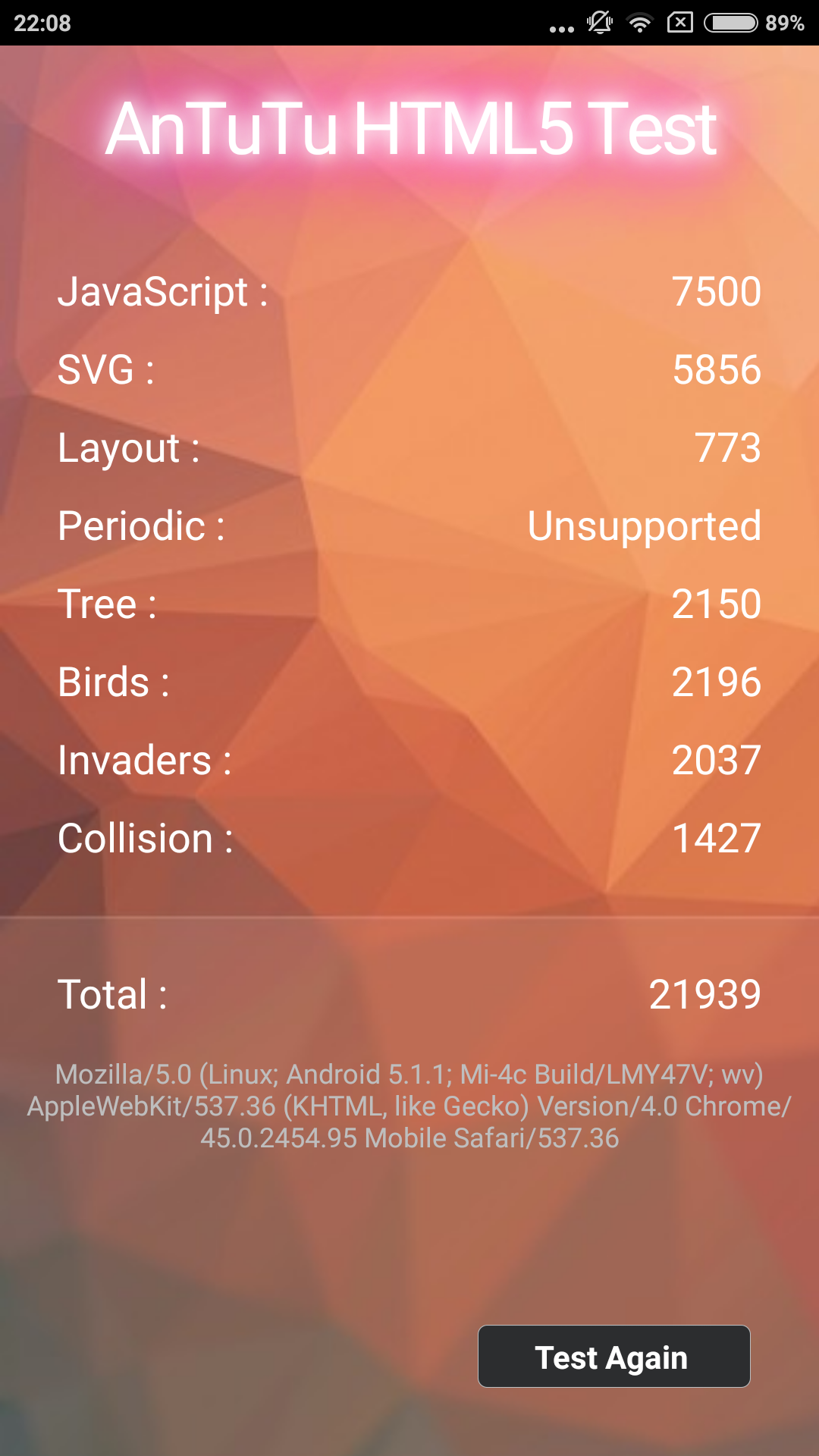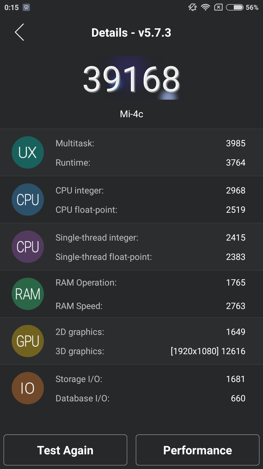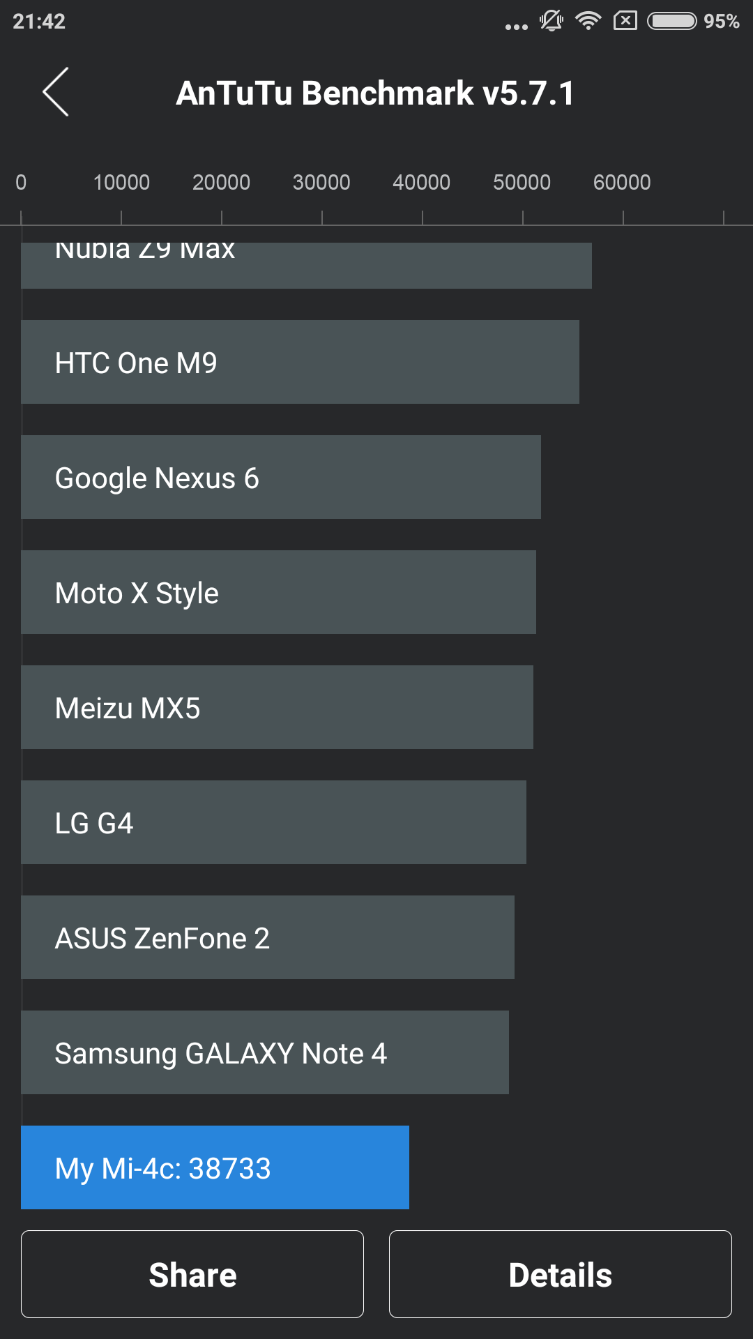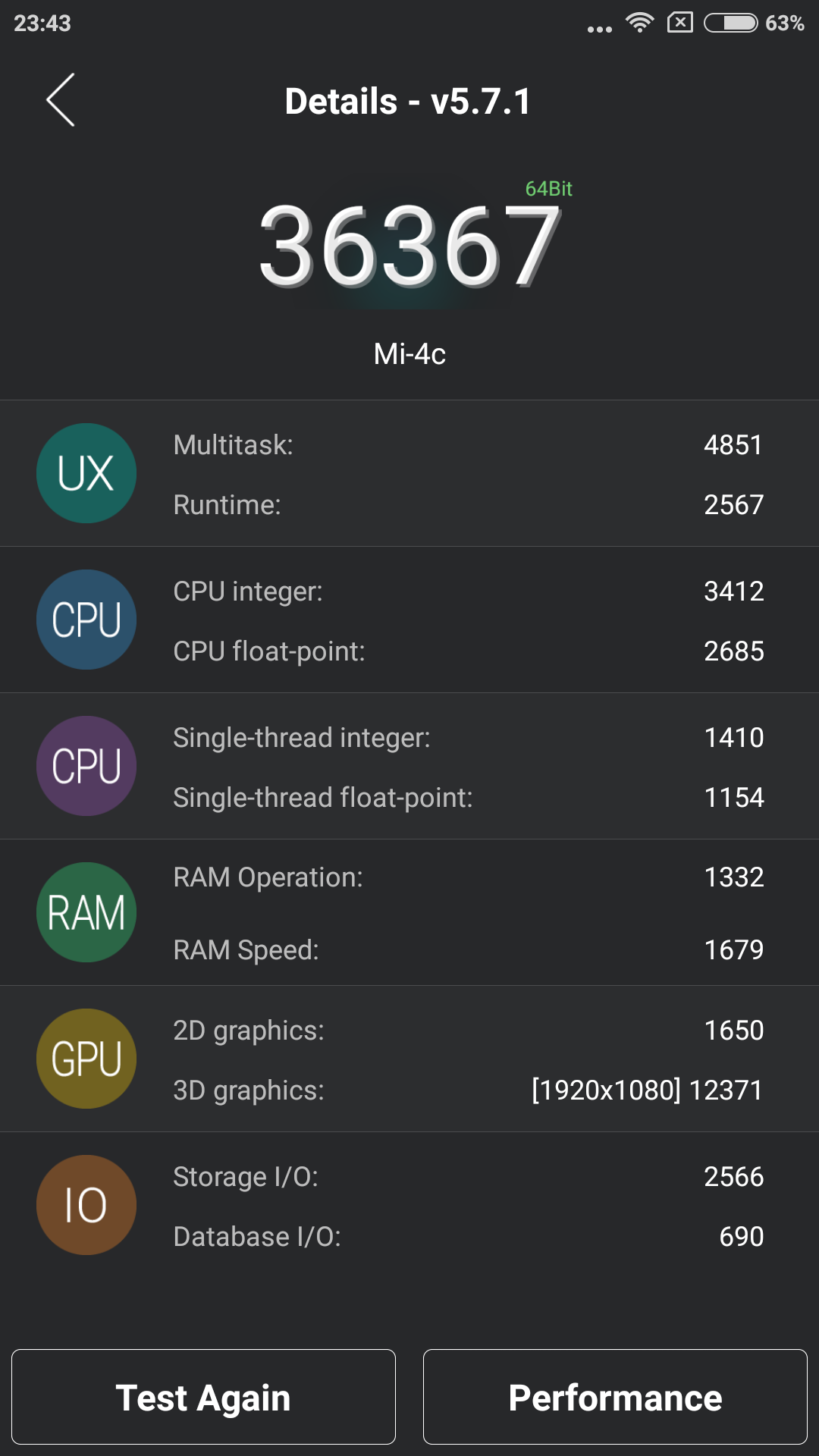 הרצתי עליו מגוון מבחנים סינטטיים, לכל אוהבי המספרים והציונים. הופתעתי לראות שהאנטוטו מעט נמוך מזה ששיאומי הבטיחו. במעבר למבחן אנטוטו 32BIT התוצאה עלתה, אך עדיין רחוקה בכמה אלפים מה 50+ ששיאומי טענו. בבחינה מדוקדקת של התוצאות בדפי השיווק של שיאומי, התברר שהם השתמשו בגרסאת אנטוטו חדשה יותר, 5.7.2 המסבירה את התוצאה השונה, ואכן, כאשר התקנתי ידנית את גרסאת האנטוטו החדשה ביותר, 5.7.3, התוצאה השתפרה פלאים ועלתה ל52,000 נקודות. זכרו גם שמדובר כאן בגרסא הבסיסית, עם 2GB ראם בלבד. אין ספק כי הגרסא הבכירה, עם 3GB ראם, תשיג תוצאה טובה עוד יותר.