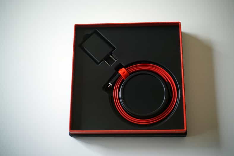 הכבל בפרט הרשים מאוד, עם עובי ונוכחות, יחד עם חגורת גומי קטנה לקיפול, וראש USB שטוח. המטען לעומת זאת, על אף שנראה איכותי מאוד, תומך ב 1.5A בלבד, ולא הגיע עם מתאם לשקע ישראלי.