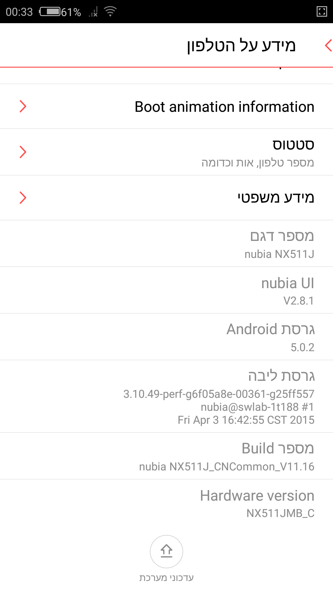 מוסדר ולצורך עדכונים עתידיים, ולכן נצטרך לצרוב ידנית את הגרסא הרשמית (שתומכת ב OTA אך לא בעברית) או גרסאות 'נקיות' אחרות.