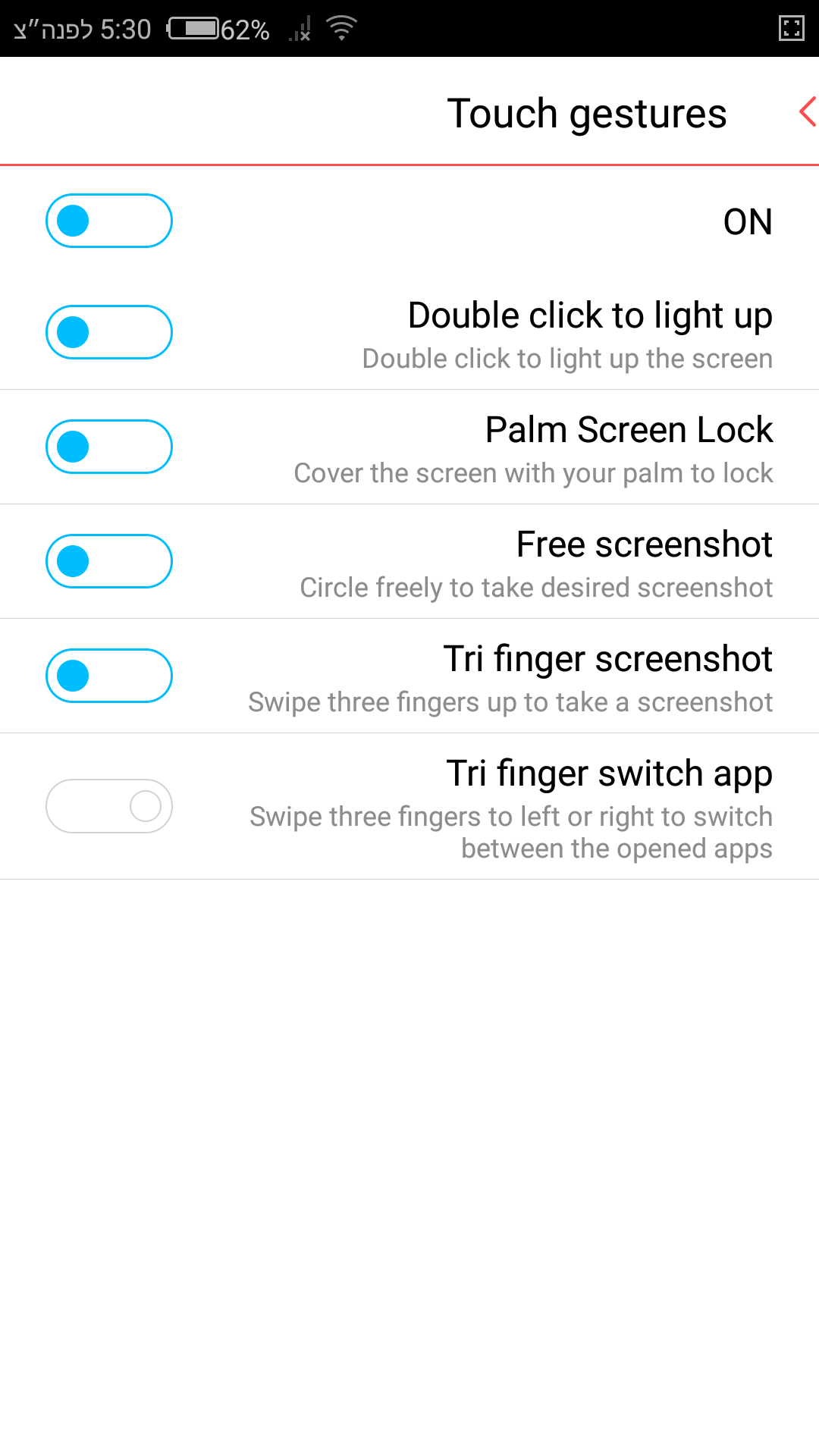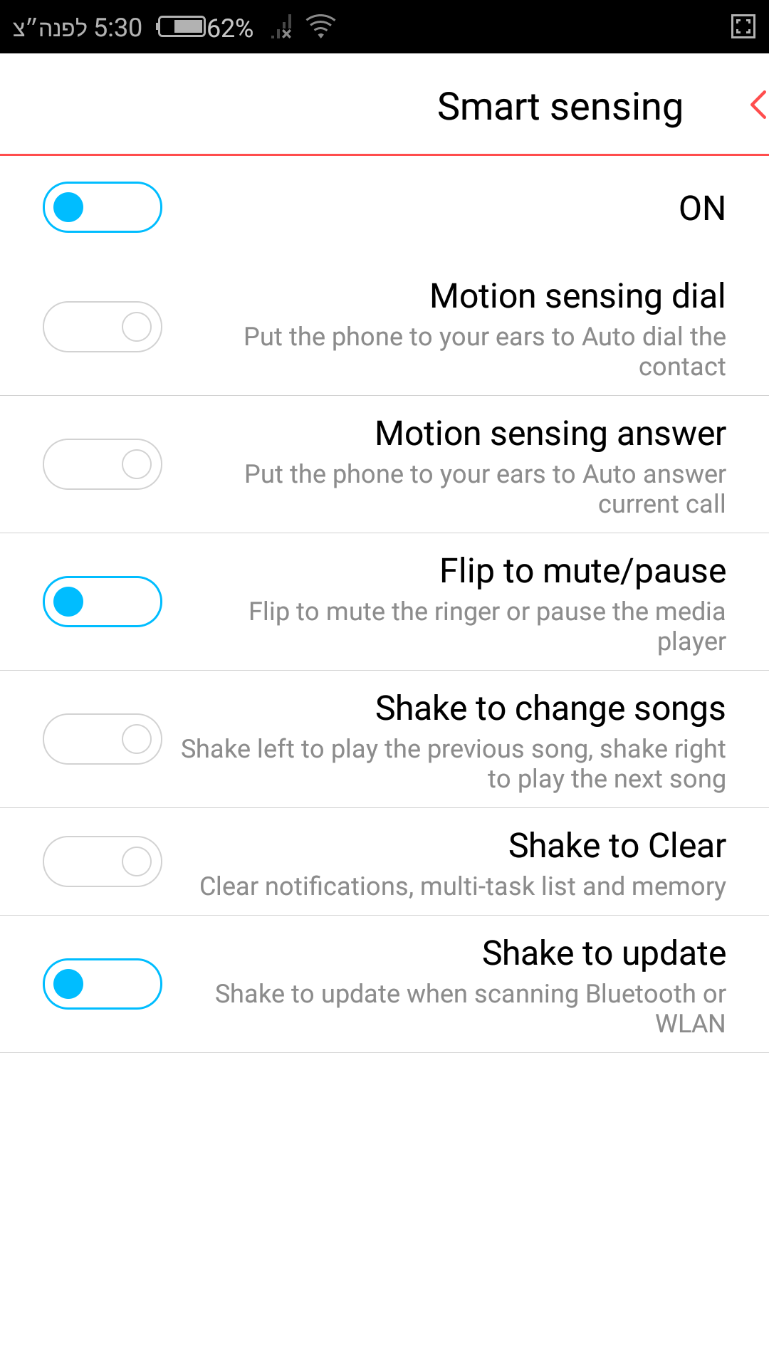 בהגדרות נמצא כמעט כל אפשרות ופיצ'ר שרק נרצה – מחוות מסך שונות, מחוות תנועה שונות (כגון הרמת המכשיר לאוזן = מענה/חיוג), מסך חכם למגן פליפ וכן הלאה. פיצ'רים אלה קיימים במכשירי דגל שונים ונחמד למצוא אותם גם במכשיר ביניים.